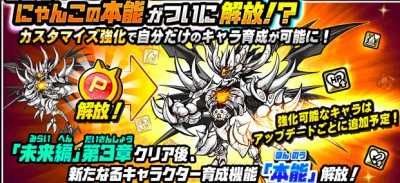 特に優先的に解放したいのが「攻撃力アップ」「基本攻撃力アップ」。特に本能解放で化けるキャラなので、優先的に本能解放していきたい筆頭である。攻撃系の本能を解放することで環境最強キャラの一角となる。他も「波動ダメージ軽減」以外はにゃんまの性能を高める本能なので、「攻撃力アップ」「基本攻撃力アップ」よりは優先度は低いが解放させていきたい。